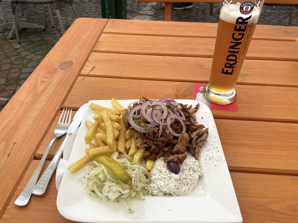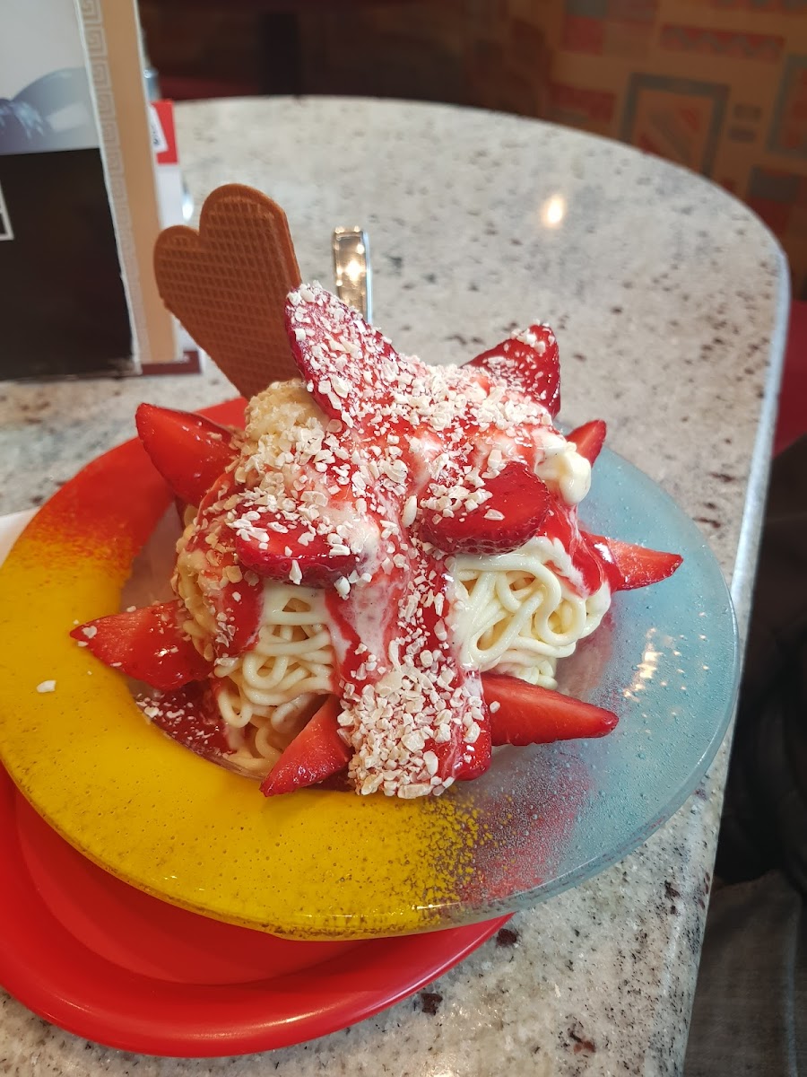 The signature dishes here are a must-try. Café Eiscafe Fantastico is known for its Spaghetti Eis, a unique twist on classic spaghetti, made with vanilla ice cream shaped like pasta and topped with strawberry sauce and white chocolate "cheese." It's a fun and tasty treat that's perfect for dessert lovers of all ages. For something with a little more flavor, the Gyrosteller is another standout dish. Packed with savory meats and served with fresh vegetables, this dish is a fan favorite among those who enjoy Mediterranean flavors.